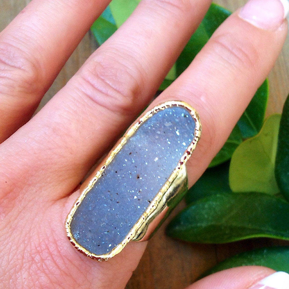 Druzy is said to help aid in increasing energy and balancing the body. Created naturally over millions of years, Druzy stones are tiny quartz crystals that form when ground water carries natural minerals across an area of rock and rapidly cools.